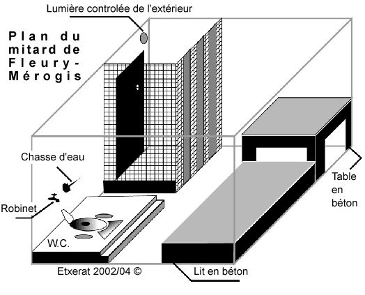 Plan d'un " mitard " dans lequel la commission de discipline peut décider de placer les personnes ayant tenté de se suicider.
